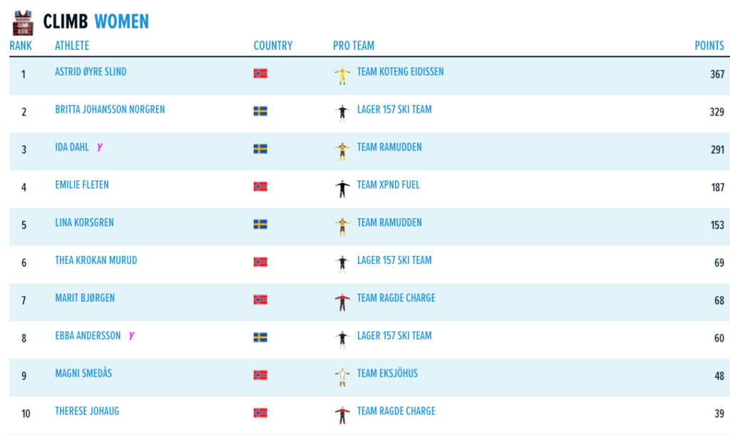 Klatretrøye: Tord Asle Gjerdalen, Team XPND Fuel og Astrid Øyre Slind, Team Koteng Eidissen
