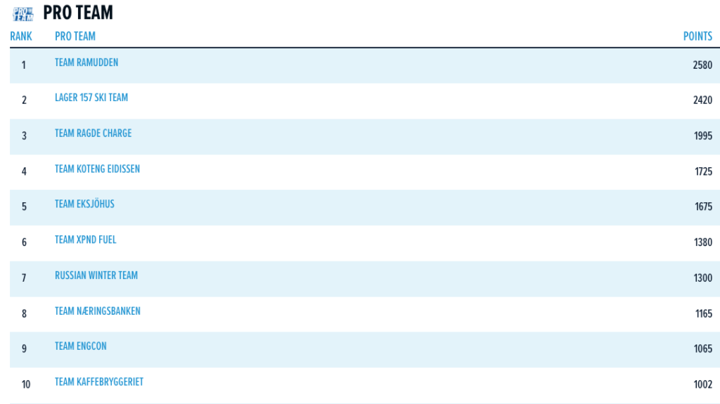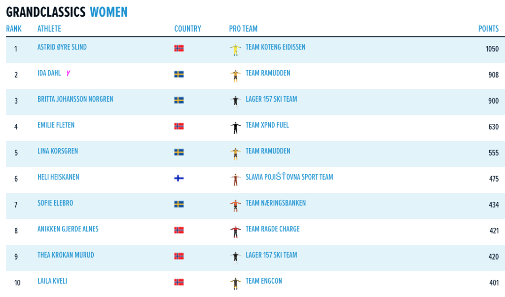 Sammenlagtstilling Visma Ski Classics sesong XII