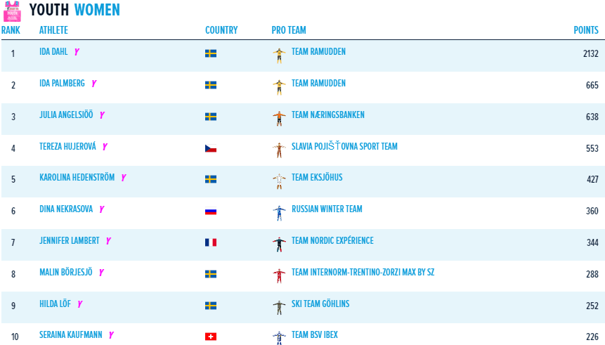 Andreas Nygaard avsluttet sesongen med en tredjeplass og var totalvinner allerede før Ylläs-Levi. Seiersmarginalen ble til slutt hele 341 poeng til nummer to Emil Persson, Lager 157 Ski Team. Persson som sikret andreplassen med sin seier i finalen. Nummer tre i totalen ble Max Novak, Team Ramudden, 120 poeng etter Persson.