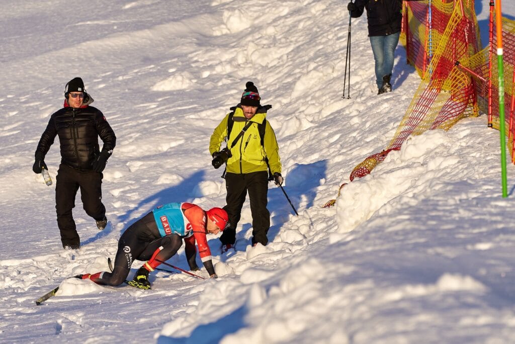 Andreas Nygaard fløy gjennom sikkerhetsnettet og havnet på ryggen utenfor løypa 4 kilometer før målgangen i dagens Visma Ski Classics renn i Orsa.