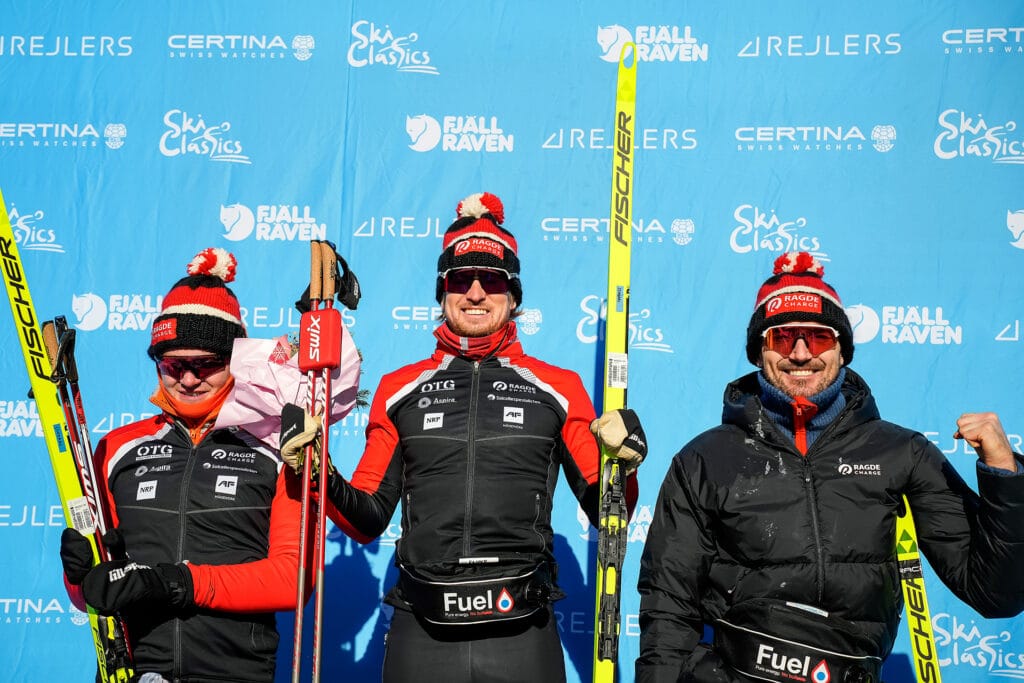 Dermed overtok lederen Kasper Stadaas også totalledelsen i Ski Classics. Johan Hoel spurtet litt overraskende ned Andreas Nygaard, og etter Rieges disk havnet hele Ragde Charge-trioen på pallen.