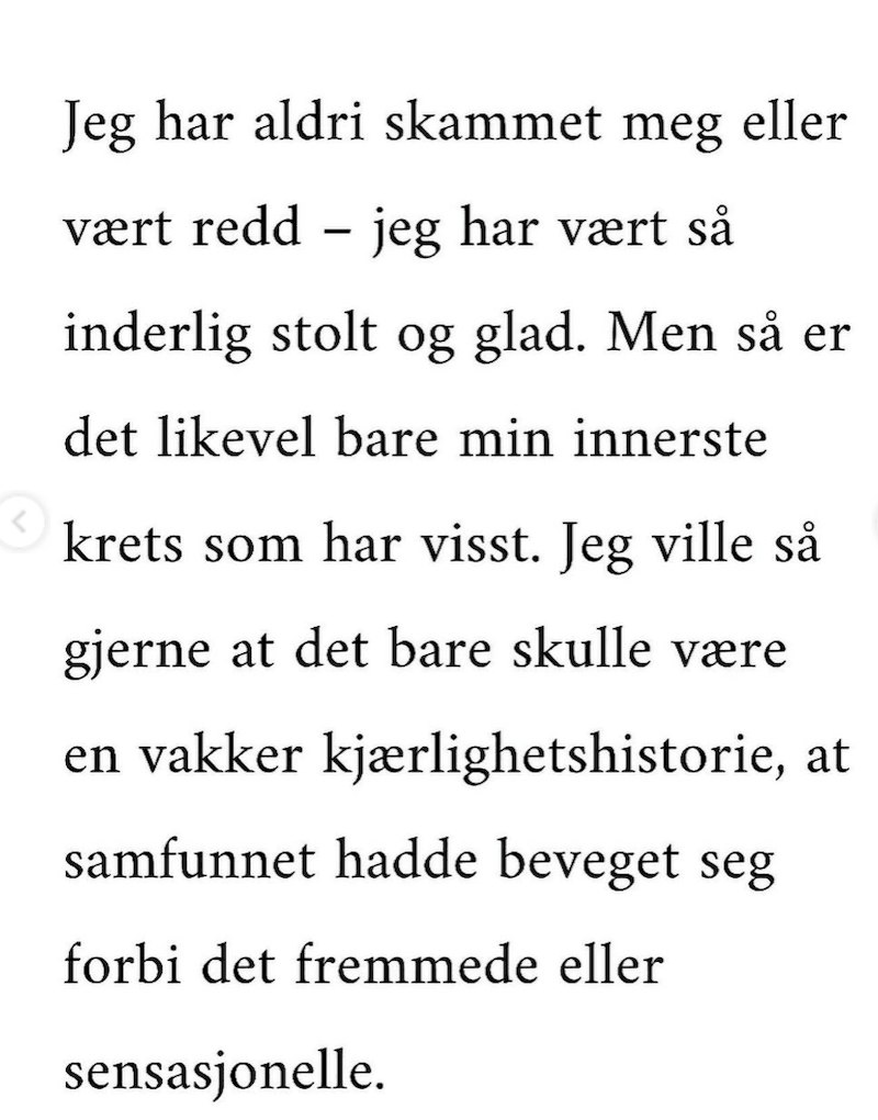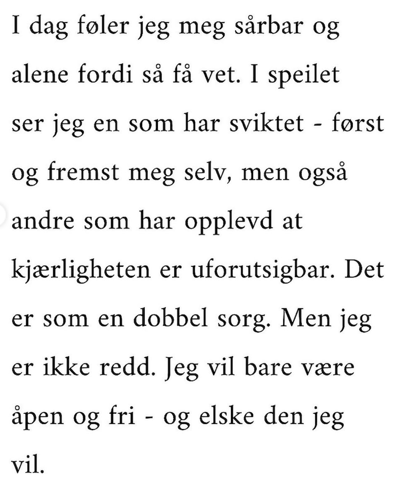 I innlegget forteller Uhrenholdt Jacobsen ærlig og usminket om følelsene og kjærligheten som kun hennes aller nærmeste har kjent til nå.