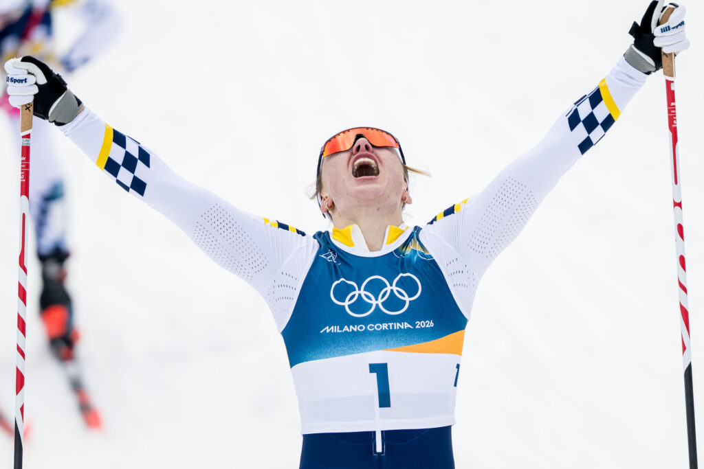 Linn Svahn vant OL-sprinten, og tok sin første mesterskapsmedalje – 1831 dager etter fallet i Ulricehamn i 2021. Foto: Joel Marklund / BILDBYRÅN