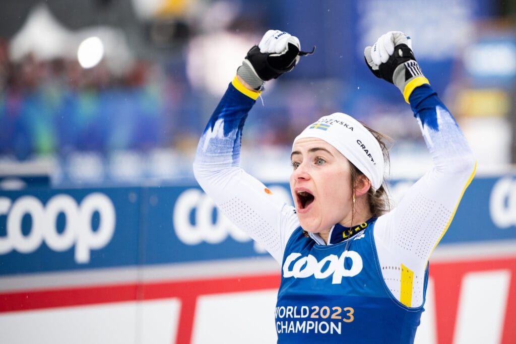 Ebba Andersson snyter langrennsdronninga fra Dalsbygda for gullet i VM-comebacken på hjemmebane, og forsvarer tittelen på skiathlon fra VM 2023 i Planica.