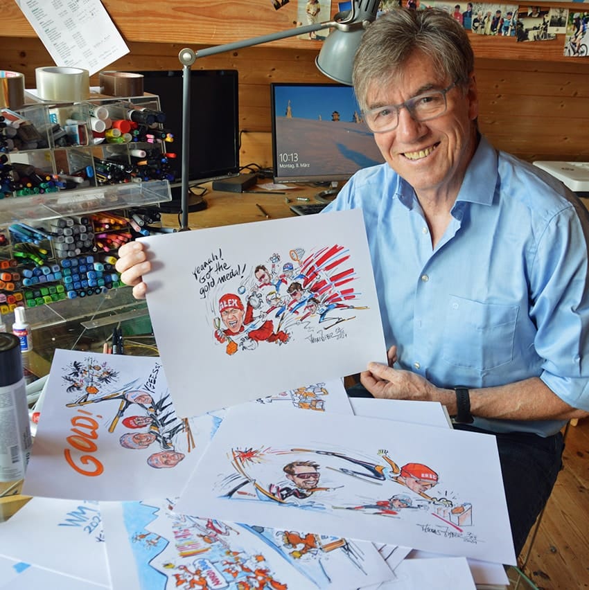 Tyske Thomas Zipfel er noe så unikt som langrennssportens egen karikaturtegner. Med penn og pensel formidler han atleter og mesterskap på måter som fremkaller både latter og ettertanke.