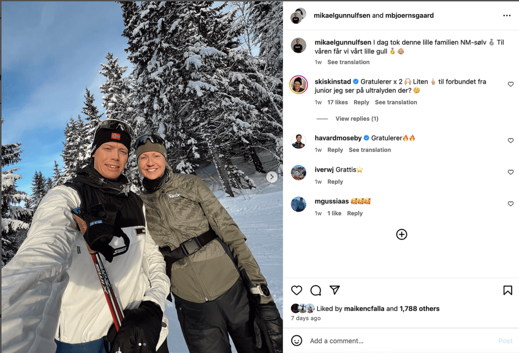 Det skrev Mikael Gunnulfsen og samboer Marthe Bjørnsgaard på Instagram etter 10 kilometeren på Gåsbu.
