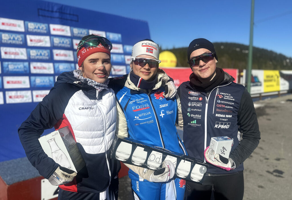 Helene Tegdal fra Skrim på Kongsberg var nesten like klar toer, mens Emilie Ruud Lia fra Kongsvinger tok den siste pallplassen. Hun har jo også gjort det skarpt internasjonalt på rulleski forrige sesong.