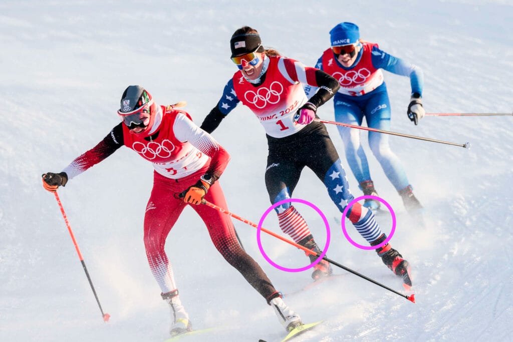 Under OL 2022 i Beijing var det varmesokkene til Rosie Brennan (midten) som fikk størst oppmerksomhet, ikke prestasjonene.