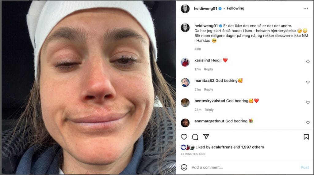 Heidi Weng pådro seg en hjernerystelse da hun falt på vei til trening for to måneder siden. Plagene i etterkant har hindret henne i å trene normalt.
